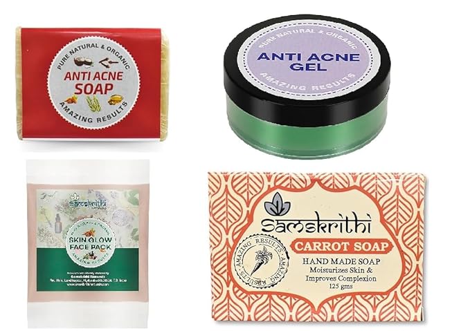 Samskrithi Naturals Anti Acne Combo With - Anti-Acne Soap , Anti-Acne Gel, Skin Glow Face pack, Carrot Soap Pack Of 4 Perfect for Skin | Men & Women