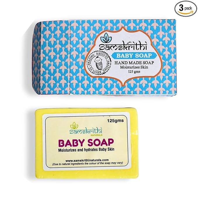 In a convenient 125g size, Samskrithi Naturals Baby Soap is a practical addition to your baby's daily bath routine, promoting safe and gentle cleansing without any misleading marketing claims. Choose a product that focuses on the well-being of your baby's skin.
